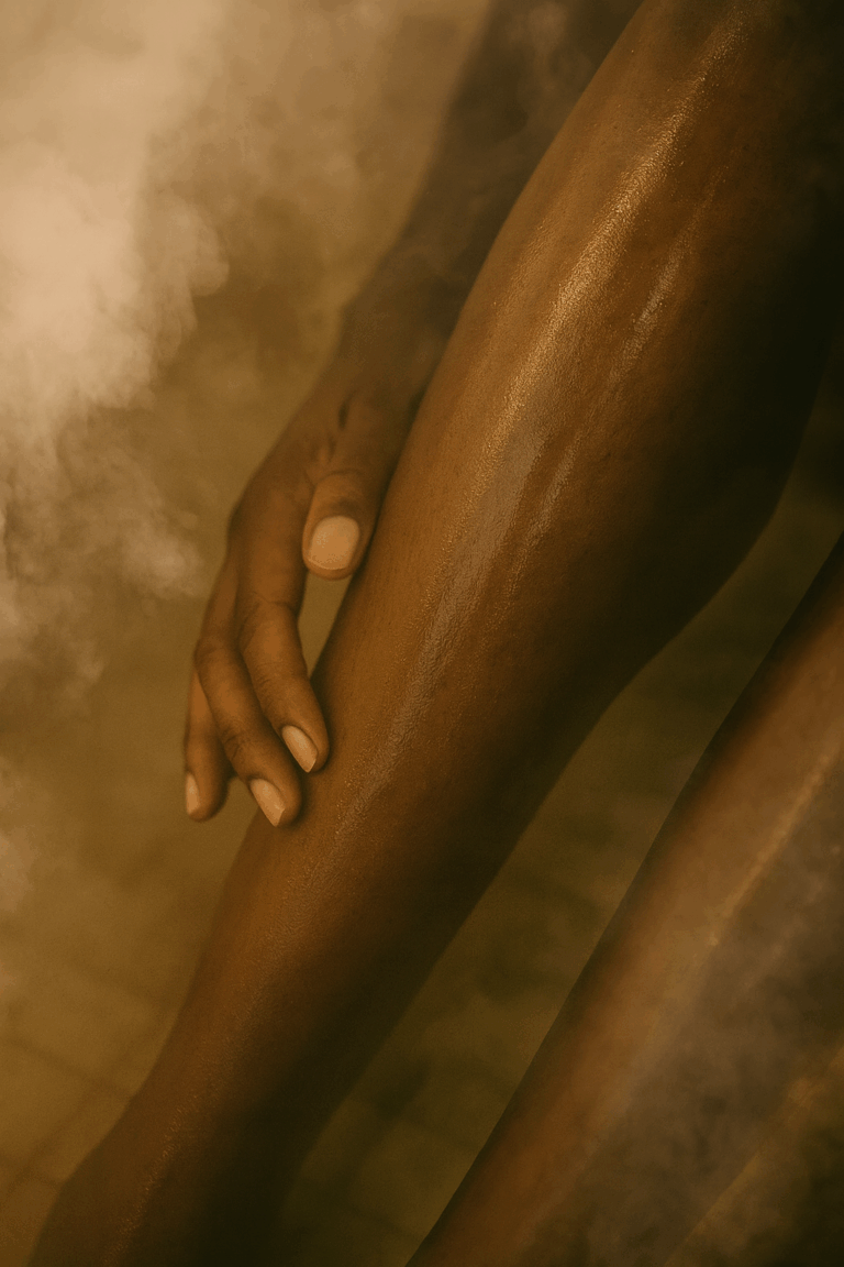 Apply black soap to damp skin. Leave it on for 3-5 minutes to further soften the skin. Let this moment be slow, sacred, and yours.